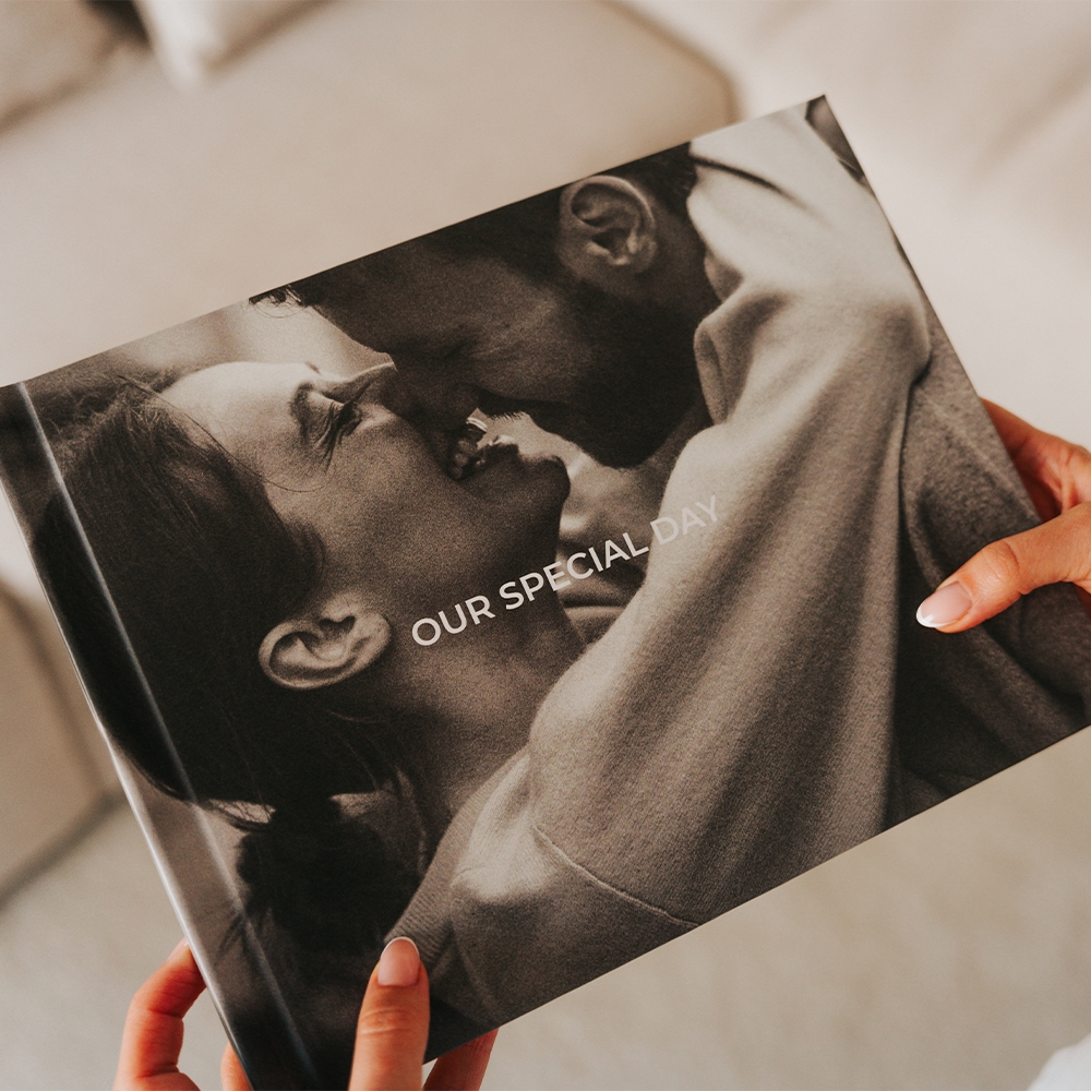 Os Álbuns Press da Dreambooks possuem capas duras feitas de cartão rígido, que são totalmente personalizáveis. As capas são tradicionalmente fotográficas, permitindo a personalização completa com fotografias, textos ou cliparts na capa, contracapa e lombada. A impressão inclui uma laminação matte, que confere um toque e impacto premium, elevando a aparência e a durabilidade do Foto Livro.